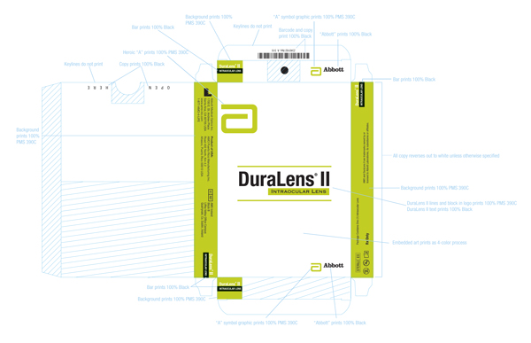 I created this mock-up of a product not yet printed, by shooting a digital photo of a box with different packaging and placed vector artwork in Photoshop, so that a finshed concept could be shown in pwoerpoint presentation to team who would produce the IOL packaging box.